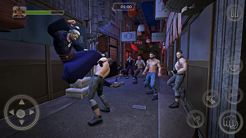 功夫格斗是一款动作类型的格斗游戏。在功夫格斗中,玩家可以在街头利用自己卓越的格斗技术,以一挡百,横扫千军,展现自己卓越的功夫,并且在擂台上挑战很多悍将,最后拿下关卡冠军,不断成长,成为不败传说!