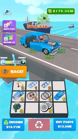 2、通过合并相同等级的车辆来获得更高级别的车辆,不断提升自己的车队实力,完成诸多赛事挑战。
