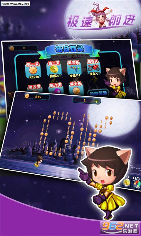 极速前进为你带来一款让你瞬间开启马达模式的横版闯关类跑酷游戏!游戏玩法类似火箭飞人,横版的场景中拥有各种障碍和火箭阻挡你前进,避免它们,收集金币,以自己的能力来挑战更远吧!带给你更多乐趣!游戏玩法很简单,玩家你需要帮助魔力美女向前飞行挑战,避免障碍,挑战更远!