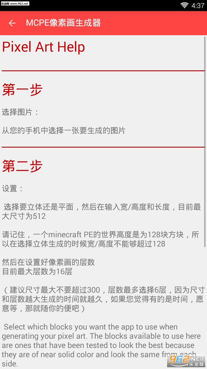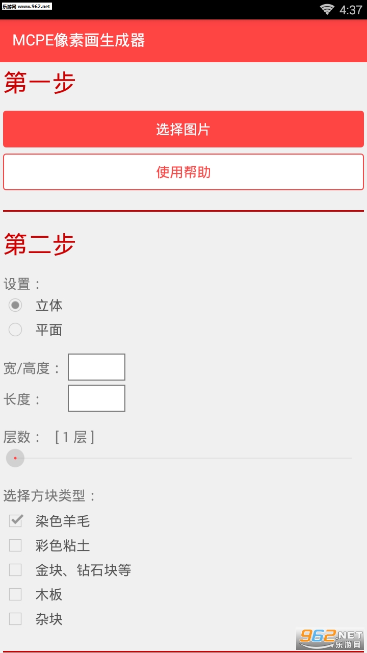 《mc像素画生成器》是一款可快速生成像素图画的手机工具,选择长宽高后就可以设置好像素画的层数,尺寸和层数越生成的时间会更久,建议不要超过300,有需要的用户可以下载使用!
