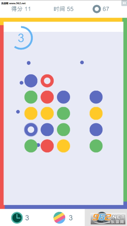 1、时间(背景颜色)会不断减少,玩家需要消除小球使时间回涨