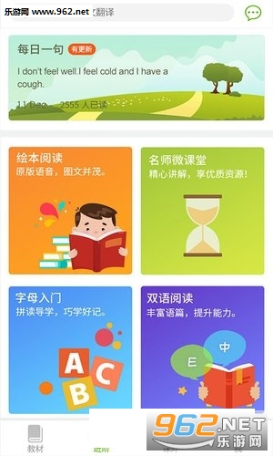 【进阶】提供绘本阅读、字母拼读、双语阅读、分级阅读、词汇学习、语法学习、名师微课堂等专项内容帮助学生提升英语学习水平。