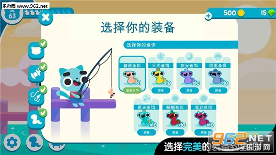 准备装备,等鱼咬钩,并玩一个有趣的小游戏来与鱼战斗并得到它。所以你要当心,因为没准连鱼带竿一起丢掉也说不定哦。赚取经验,提升等级,解锁道具并完成你的鱼类收藏吧!
