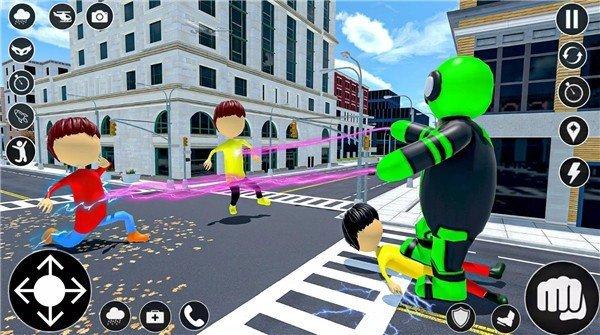 1、核心玩法围绕着蜘蛛侠一般的绳索技能展开,玩家可以利用绳索在城市里穿梭。