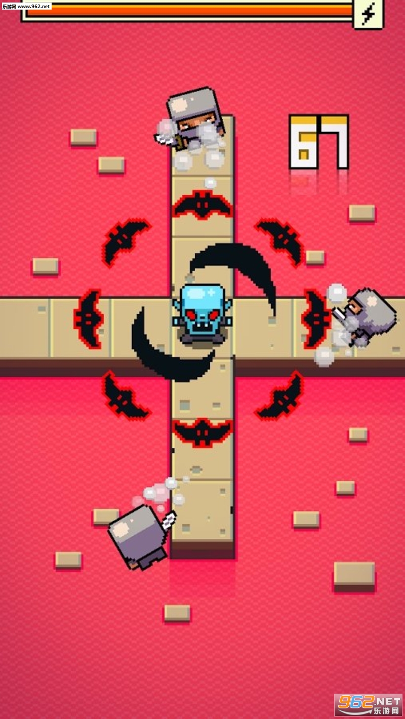 风格很像Flappy bird。在游戏中玩家能逐步解锁角色皮肤,升级一些增强防御的技能。
