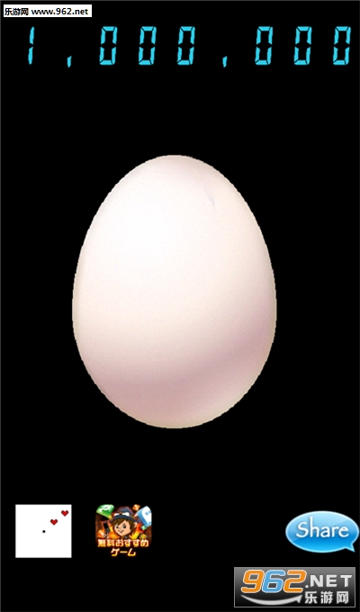 一百万的蛋是日本的一款奇葩手游,这款游戏由三个人花三天时间,但是下载量到现在超千万。这款游戏的玩法就是没完没了的对着游戏屏幕中出现的蛋进行点击,一直到将其打碎。你也不知道什么时候会敲出什么来。