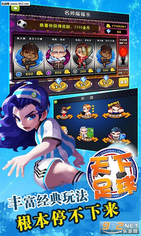 《天下足球》全新精英副本,激情四射;全新跨服天梯赛,火力全开;更有全新福利活动,金币、钻石让你轻松赚到翻!最劲爆的赛事为你而来,最刺激的挑战为你开启,快来《天下足球》,演绎“足球传奇”吧!