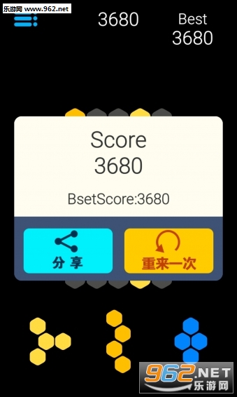《Hex By SYL安卓版》是一款俄罗斯方块类型打发时间休闲类游戏,游戏玩法类似俄罗斯方块,只不过背景放在了六边形之中,玩家需要根据给出的指定的方块进行拼凑消除,操作简单,喜欢的小伙伴快来下载吧!