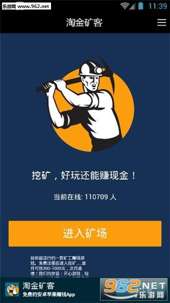 淘金矿客软件24小时全天候在线挖矿,目前最流行的一款矿工赚钱游戏。