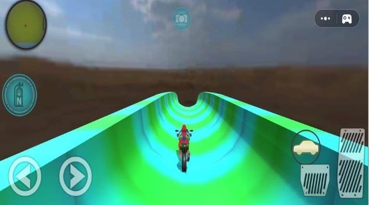 1、骑着酷炫的摩托车进行行驶,穿越各种复杂又危险的道路。