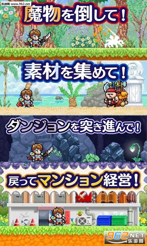 《勇者公寓安卓中文版》是一款像素风格休闲模拟类游戏,游戏以勇者战魔王为背景,玩家扮演的勇者角色,需要在地下城中完成各种大战魔王的任务,收集资源,来建造自己的旅馆,扩大经营的规模,玩法剧情丰富,快来下载吧!