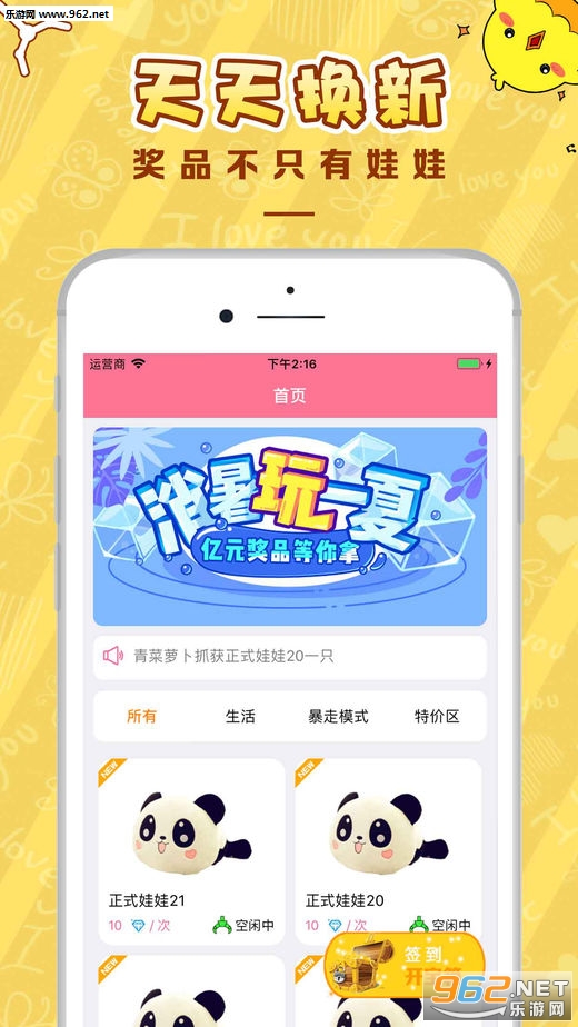 玩家可以通过此款爱啪啪体验商场夹娃娃机的乐趣,抓到的娃娃直邮到家里哦!