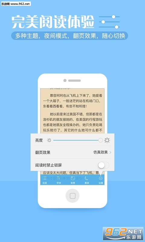 3.【阅读功能】优秀阅读体验,护眼模式、仿真等多翻页效果、文字大小调节、变换阅读背景、阅读亮度调整、锁屏时间变换、批量下载、进度跳转、目录书签、报错功能。
