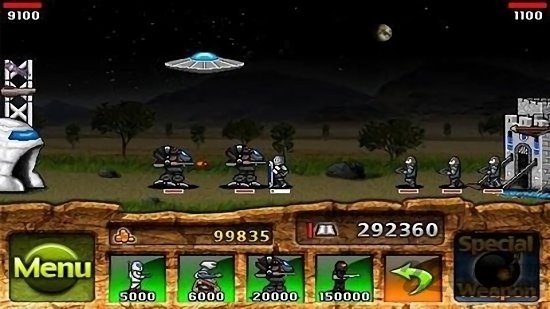 游戏的背景比较新颖,是关于人类进化的。游戏开始时,玩家们控制的只是原始人,然后随着关卡的延伸,会渐渐的进化,从中世纪的骑兵、剑士到现代化的坦克、冲锋枪,最后是未来的高科技武器和载具。游戏上,只要合理的搭配兵种,消灭对方基地就可以取胜.,这个游戏的目标很简单&摧毁你的敌人基地。战略和战术决定你的攻击和防御是否成功。记住,在战争中你不能修理你的基地。通过杀死对手获得经验,升级你的装备。每个时代都有自己独特的国防水平和特种武器,你需要合理使用它们!
