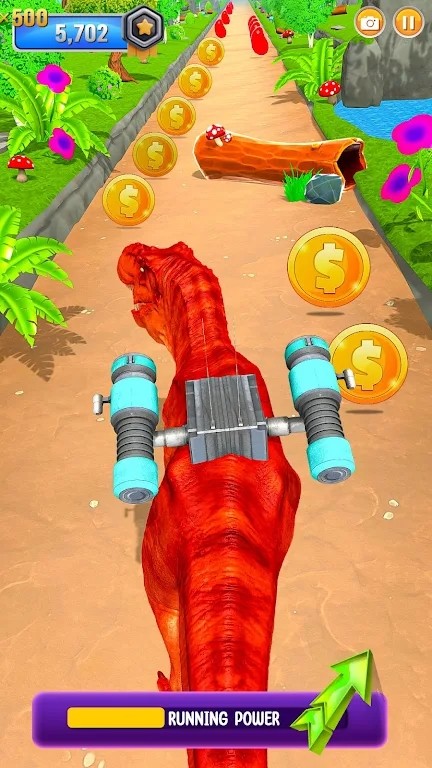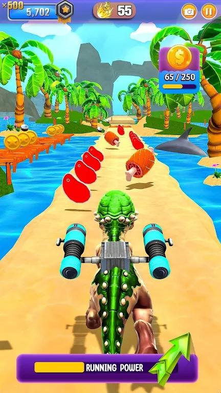 恐龙无尽的奔跑有着很优秀的闯关跑酷竞技体验,来这里玩家控制恐龙不断的进行跑酷,一路上会有很多道具可以捡起,可以通过拾取的金币来强化恐龙和恐龙身上的武器,操控恐龙跑起来很简单,左右移动和跳跃即可,关卡中不要跳到水上或者道路边上,不然就会死亡或者扣分,掌握好节奏即可轻松闯关!