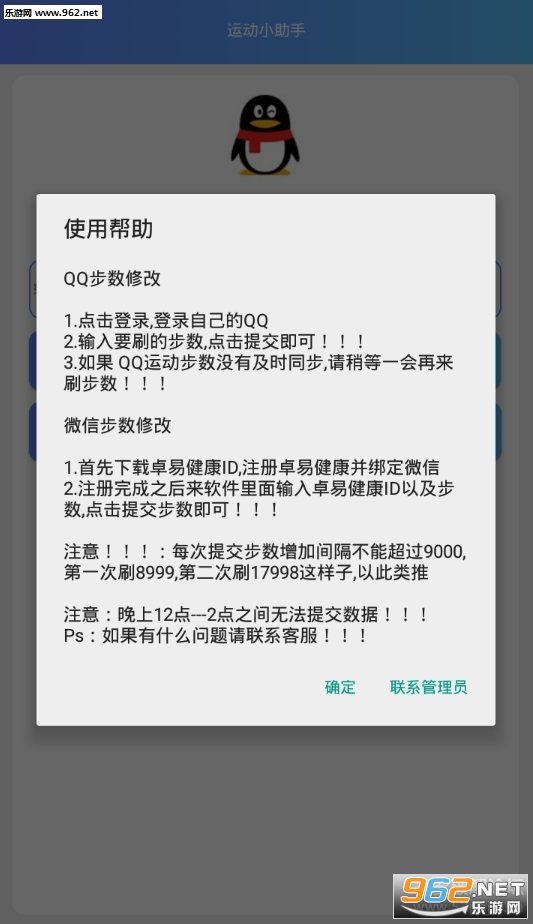 《运动小助手app软件》是一款功能十分强大的QQ运动刷步数作弊神器。使用本款软件可以修改和qq上的运动步数,当然软件也不是万能的,不能随便的刷,每次刷的间隔不能超过9000,想要高步数就需要多刷几次了。