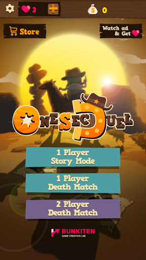 《One Sec Duel安卓版》是一款枪战冒险游戏,游戏中你将会成为西部的王牌射手,把握时机,将你的敌人一击必杀,各种各样的冒险等你来体验,还有多种模式选择,非常的有趣,快来下载吧!
