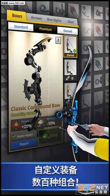 2、组合搭配不同的组件来自定义您的弓箭;