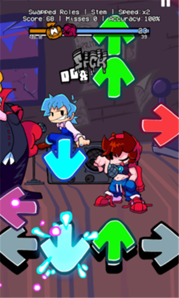 FNF电子版游戏中音乐节奏闯关和挑战都能够让玩家来体验,丰富的关卡和闯关都能够让玩家来挑战,跟随音乐节奏,点击箭头,享受到沉浸式的节奏闯关和冒险,丰富的模式和各式各样的闯关都能够上手,所有玩家都能够上手这款节奏闯关小游戏,用你的方式来进行有趣的闯关和冒险。