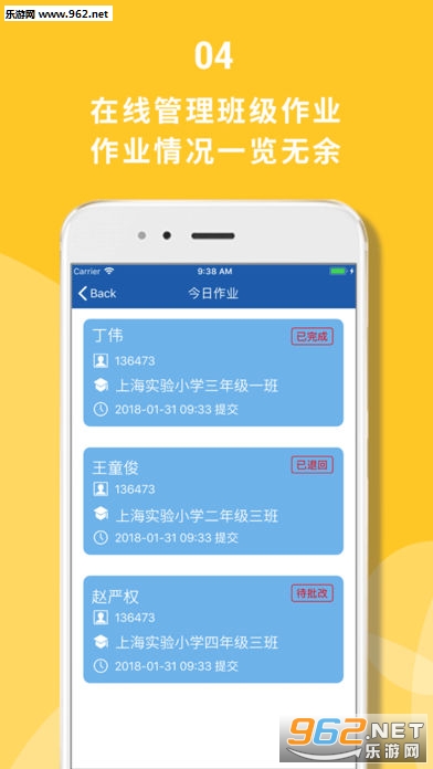 检查作业:接收学生作业后,可进行退回,批改,在线操作简单便捷;
