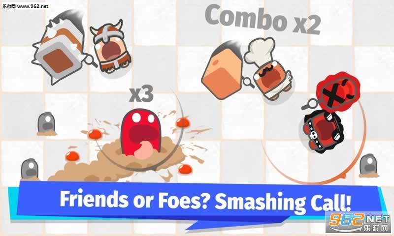 简单的控制和独特的游戏!用你的锤子用一个按钮敲击粉碎。瞄准你的敌人,成为竞技场的冠军!