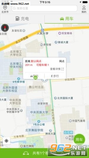 ◆ 用户可使用APP进行车辆的查询、租、还等操作。