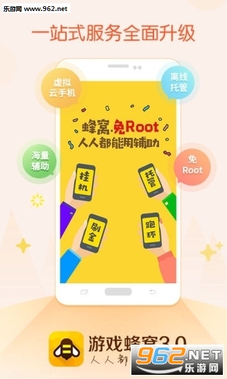 3.0版本是蜂窝团队在云手机领域的再一次大胆尝试和变革,内容主要聚焦在“云挂机”服务的全面升级!提供更多的游戏以及游戏渠道托管服务!让你的游戏24小时智能托管,托管过程不消耗本地流量、电量、不占用本地空间!