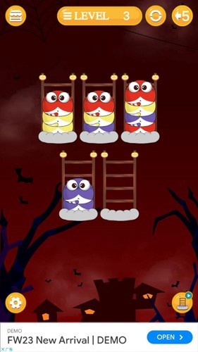 2、我们在游戏里面是需要将颜色相同的宠物放在同一个瓶子里面就可以了,然后就可以完成挑战的。