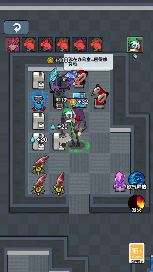 1、以办公室为战场设计,你需要与老板进行作战,很有意思。
