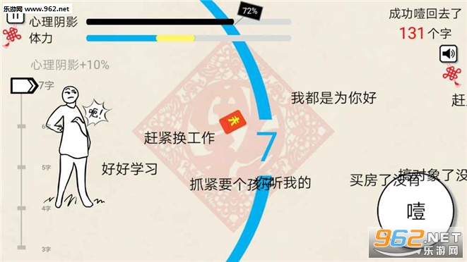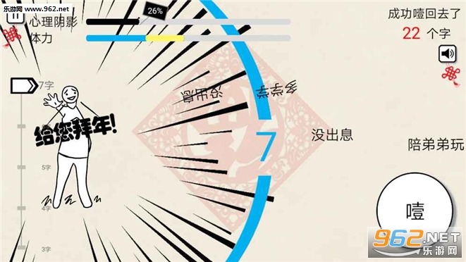 《拜年大作战手机版》这是一款简单有趣的休闲街机手游。游戏主题贴近生活,玩家将扮演表情包小人,需要判断好时机,用有限的体力让亲戚噎回更多的词。诙谐幽默的游戏风格,简单易上手的操作,但是精通很难。游戏轻松休闲,感兴趣的玩家可以下载游戏体验!