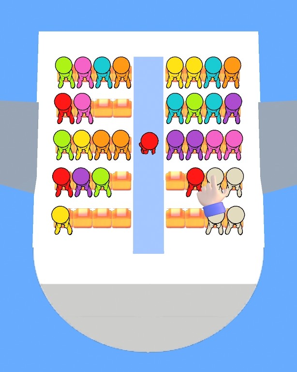 交换橡皮人位置:玩家可以通过触摸屏幕上的橡皮人,将其交换到正确的座位上。当所有橡皮人都被正确地排列在座位上时,玩家即可获得胜利。