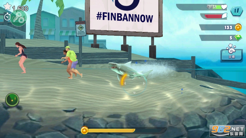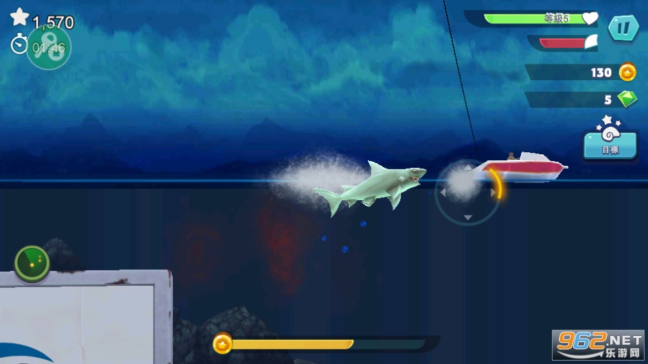 4、完成50个任务,寻找宝物取得金币与宝石,用来升级你的鲨鱼或者购买特殊救生道具。
