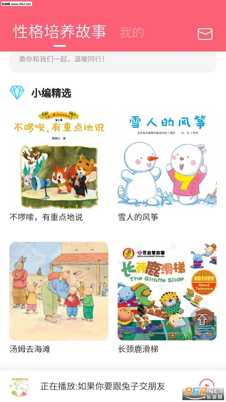性格培养故事是一款亲子阅读app,本款应用主要针对0-10岁的儿童,通过阅读丰富的故事绘本内容来影响及培养孩子的性格情绪;不仅有海量的故事绘本,还有线下故事会的活动,在各个故事中让宝宝和父母更加亲密。