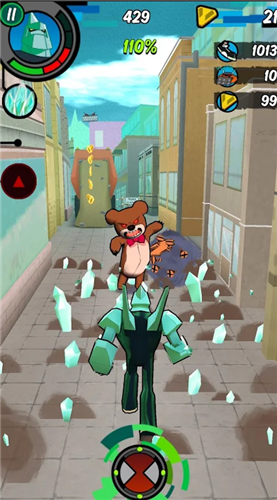 少年骇客超级酷跑是一款由动画片少年骇客改编而来的跑酷类手游。在游戏中,玩家需要运用外星神秘异能展开急速冲刺,不断的跳跃障碍和击败沿途的大反派外星人,同时还需要不断的强化技能和装备,最终粉碎敌人的阴谋!游戏有许多障碍物,玩家需要注意躲避,如遇见宝箱,操控角色触碰到宝箱即可获得其效果,可以提升自己的跑酷速度,能够助玩家更快速的到达终点。
