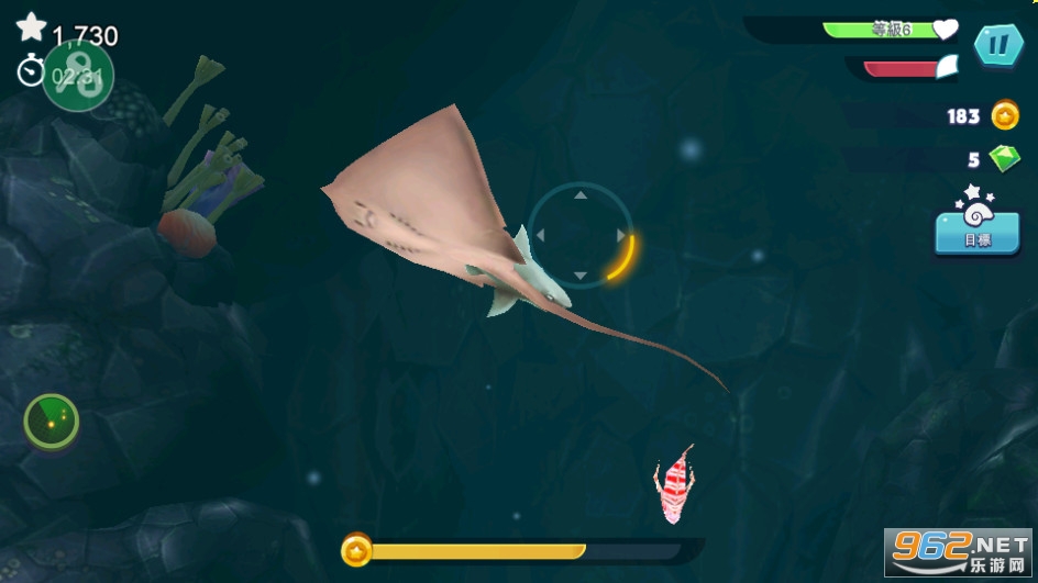 2、解锁多种不同类型的外观皮肤,你就是海洋生物链顶尖的动物,完成50多个的惊险任务;