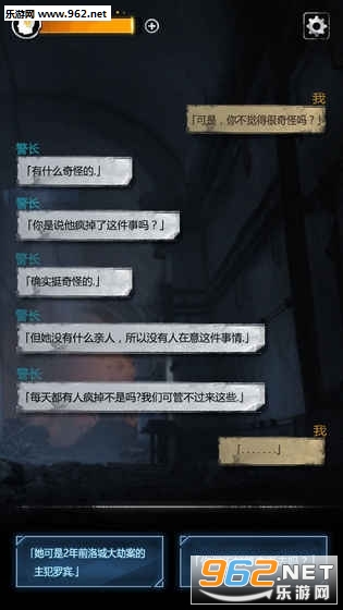 我是一个侦探。但是,从某一天开始我醒来都会发现各种奇怪的事。为了搞清楚为什么,我每天给自己设定了不同时间的闹钟,但是事情好像变得更糟了。我醒来发现自己浑身酸痛!为什么我会游荡在街头!而且自己满身鲜血!我杀人了吗?在故事中,你的每一个选择都会影响你的命运,和角色对话,寻找线索,一步步揭开案件的真相,找到杀手究竟是谁。