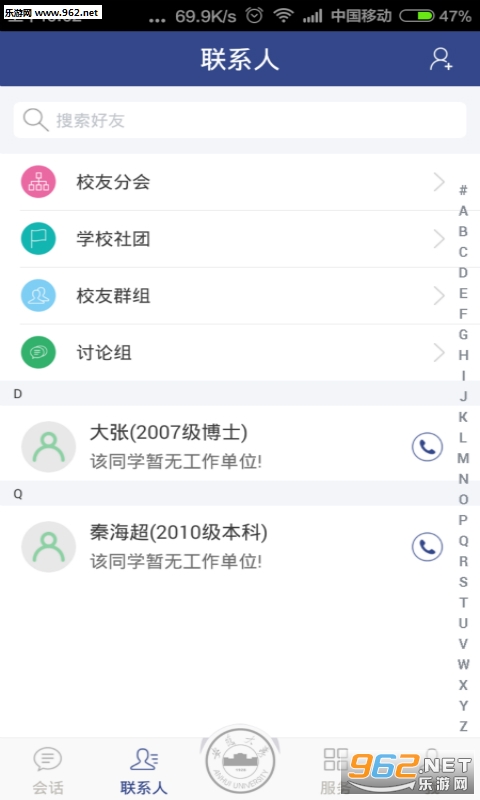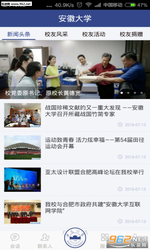安大校友是安徽大学专属定制的app,方便校友随时获取安徽大学的校方新闻,快捷的找到学校校友,增加校友与学校,以及校友间的沟通交流。安大校友,凝聚安徽大学的校友力量,一站式校友助手,打造不一样的校友圈儿。