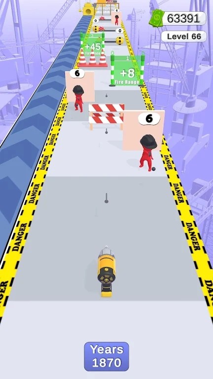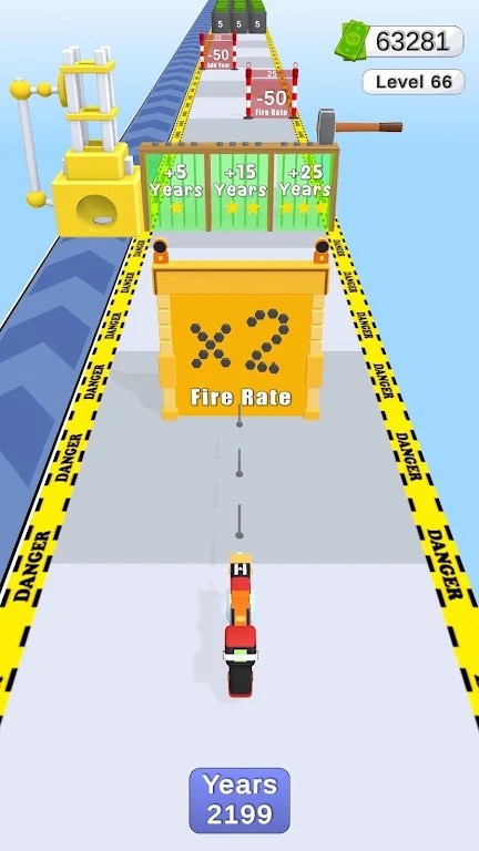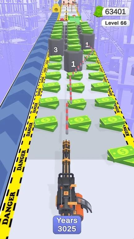 游戏中玩家要控制好钉子枪在充满特色的赛道上进行跑酷挑战,游戏中玩家可以通过穿梭加成属性的透明门强化自己的射程与攻击范围,玩家每一次完成挑战后都有一段奖励路线,在这里获取的奖励数量取决你你的手速。