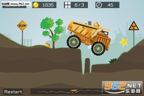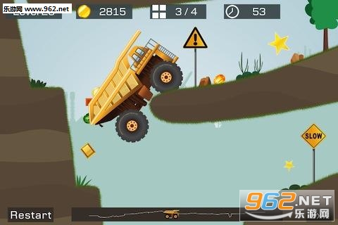 玩家在《狂野重卡》中需要驾驶一辆运满货物的重卡在各种崎岖甚至是奇葩的山路上攀爬,行车过程中难免会掉落货物,玩家需要做到的是在尽量保持货物多的情况下抵达终点,看起来挺简单,但是因为复杂的山路环境和笨重的重卡,玩起来还是有点挑战的。