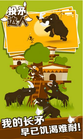 投矛达人中文版是一款卡通风格的休闲射击狩猎游戏,玩家扮演一个原始部落的战士,为了得到食物和狩猎猛犸象,可以调整射击的角度,狩猎各种大型动物,风格简单,狩猎得分越高越好,也可以解锁更多的武器,游戏中的每个关卡都要求玩家达到相应的分数才能射击猛犸象,这样才能过关。