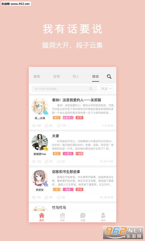 言情、同人、段子等小说创作和阅读的梦之岛。