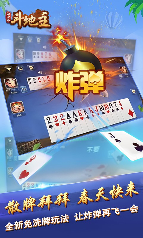 不洗牌、疯狂炸弹、跑得快、天地癞子、二人、四人玩法任你选,起手春天王炸不是梦!