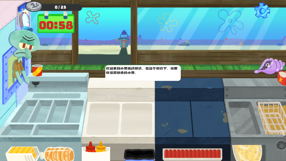 1、游戏改编自海绵宝宝动漫,玩家在游戏中可以与海绵宝宝中的经典角色一起工作。