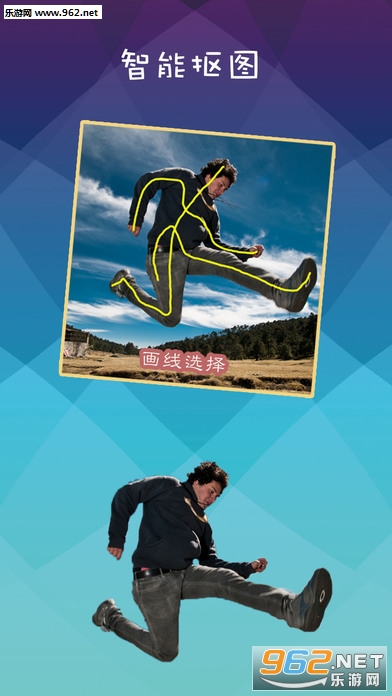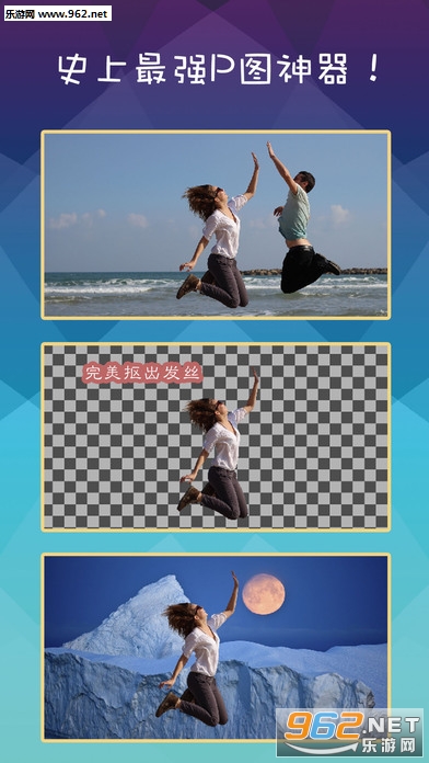 一款手机抠图神器,有了它你就可以更简单的操作手机上进行抠图操作,只需数秒抠出需要的人物,数百种背景供你选择,给用户带来更多便捷的抠图操作体验。