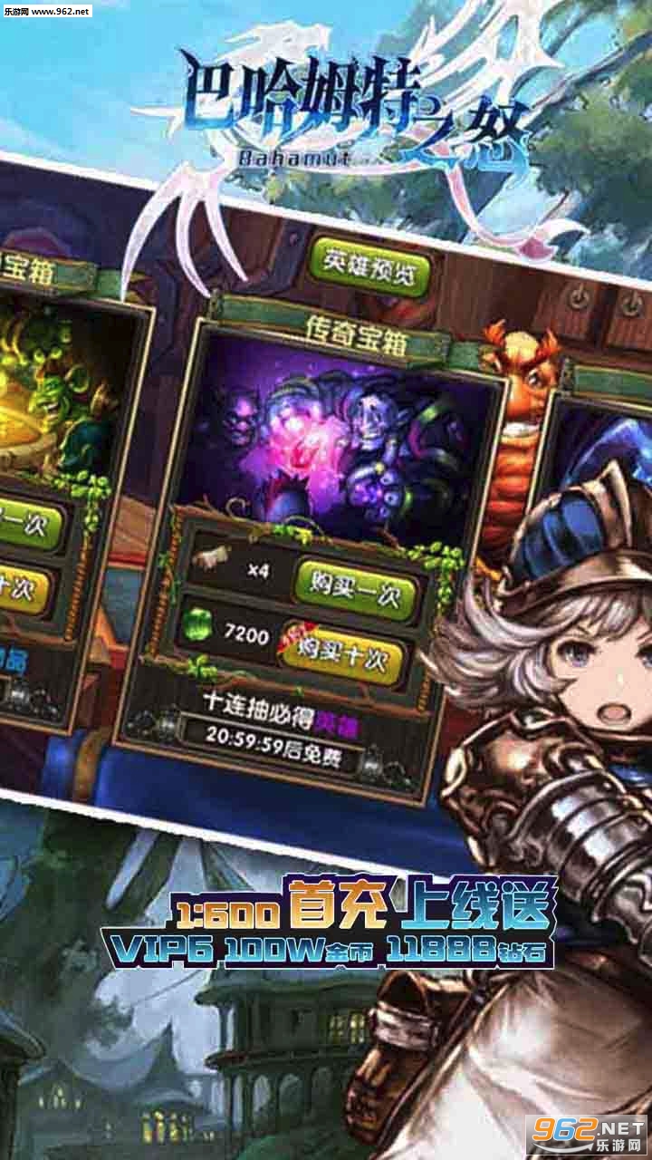 《巴哈姆特之怒》是一款回合制卡牌类手机游戏,登录即送VIP6,正常游戏五分钟即可获得妮娜,沙利尔等强力英雄。精彩绝伦的魔幻战斗画面,多种多样的阵容搭配,古典魔幻的地下城、血战模式,精彩的竞技场、巅峰神殿,奇妙的神器锻造之旅、武器锻造店和兽王秘境等众多副本,还有众多魔幻英雄美女在游戏中等待你,还在等什么,一起加入《巴哈姆特之怒》,体验属于你的魔幻游戏之旅!