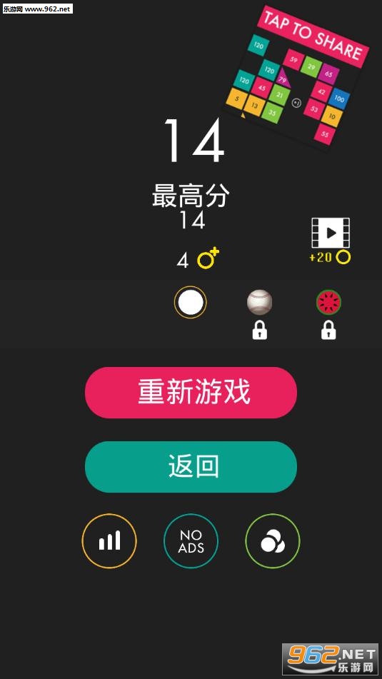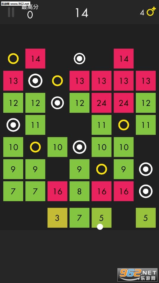 经典模式:手指拖动小球选好角度,将那些试图阻止你获得高分的方块给击碎。