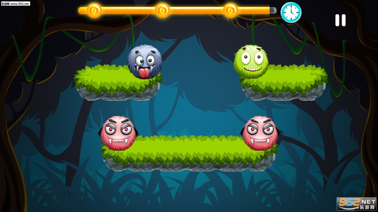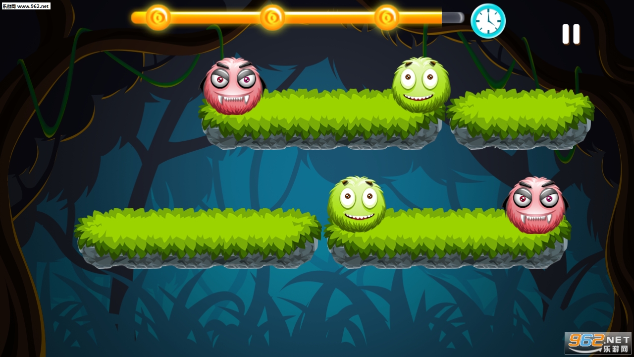 3、玩家可以点击绿色的宠物,来撞击红色的小怪;