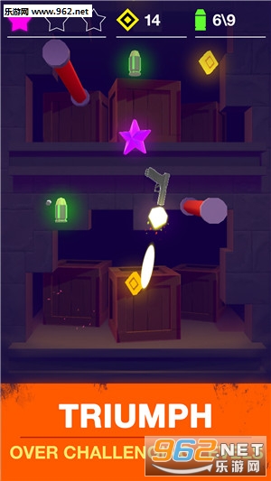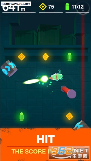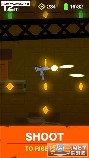 在游戏中玩家将控制一把后坐力极强的枪械,每一次射击都会令这把枪的行动方向发生改变并且发生旋转,玩家必须判断好时机,准确的射击让这把手枪不断的向上方飞去。