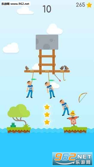 看起来清爽风画面,没想到玩法那么虐心,因为这些被吊着的男孩子需要你的拯救,看见那些绳子了吗?记住瞄准它们就好了。