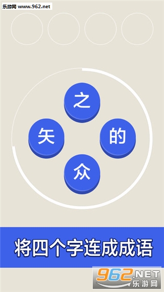《成语四个字手游官方版》这是一款以成语为主题的休闲益智手游。在规定的时间,玩家需要将关卡内的四个字排列成正确的成语,答对即可过关。简洁大方的游戏界面,简单易上手的玩法,层出不穷的挑战关卡,同时还可以学会和分享成语知识。感兴趣的玩家可以下载游戏体验!